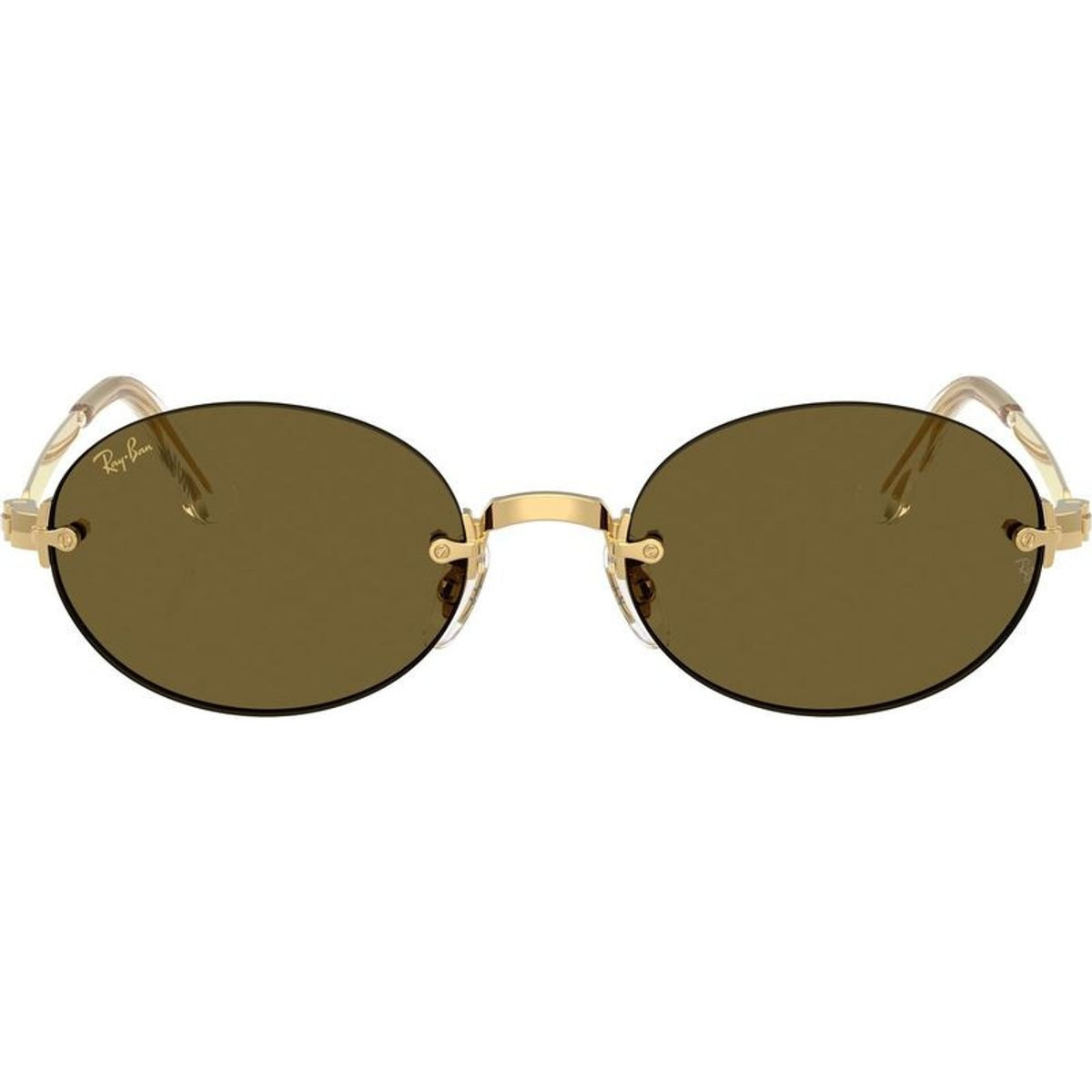 The Ray-Ban RB3929 sunglasses are a timeless choice for understated, modern style. Combining vintage-inspired elegance with a contemporary twist, this sleek oval silhouette showcases a refined rimless construction, highlighted by luxurious Arista gold front and temples for a touch of classic glamour. Adjustable nose pads ensure a comfortable, customised fit for both men and women, while Ray-Ban’s signature brown lenses provide a soothing visual experience and superior UV protection.