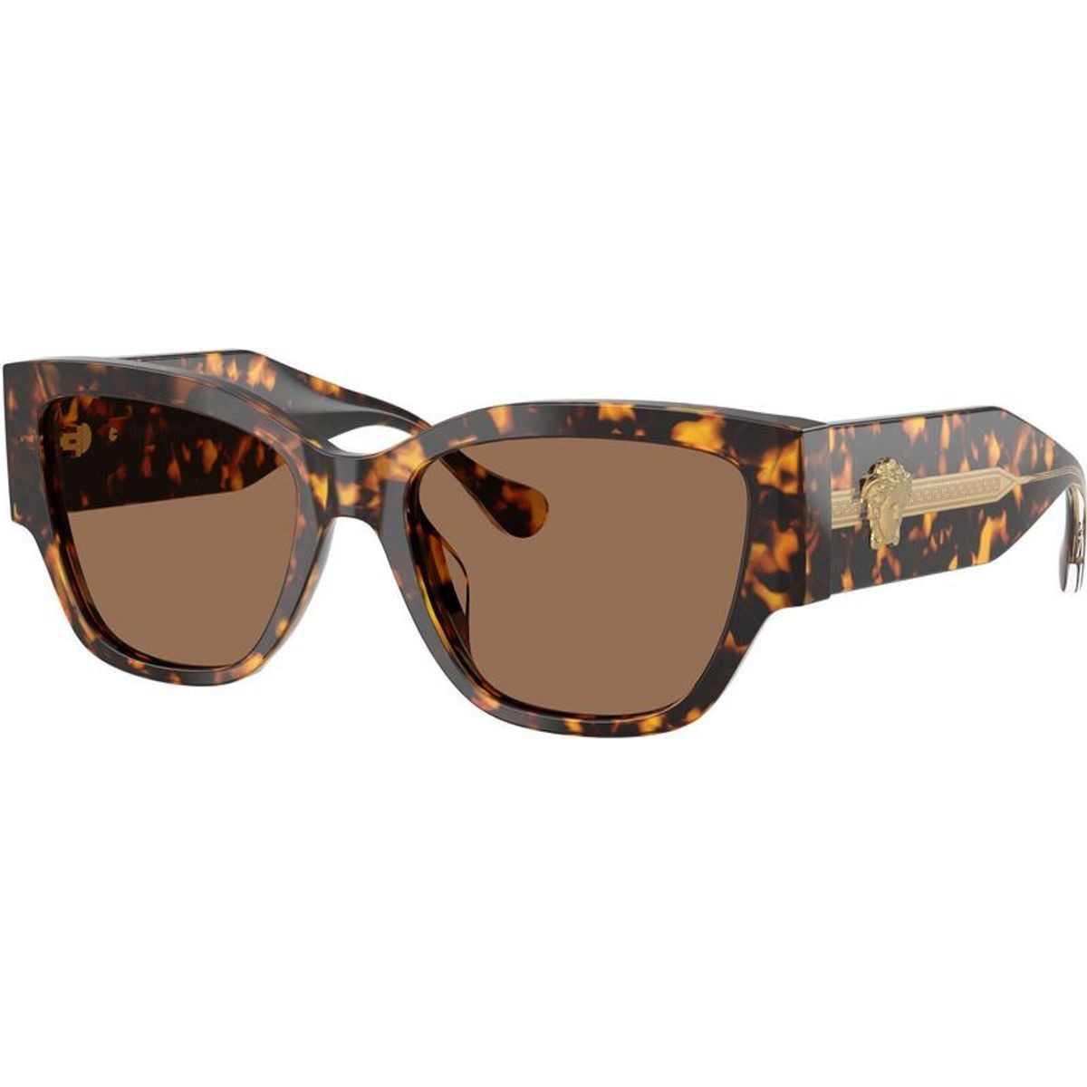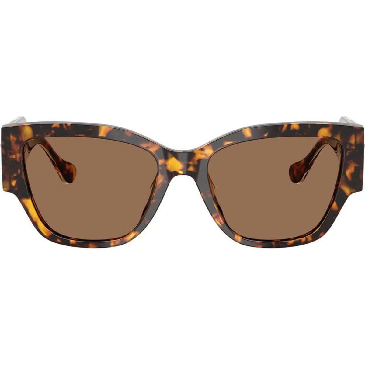 Versace presents the women's VE4509U sunglasses, where bold sophistication meets timeless elegance. Boasting a striking cat-eye silhouette, this substantial design is expertly crafted from premium havana acetate, featuring chunky temples and a visible wire core on the outer edges for a subtle touch of modern luxury. Finished with warm brown lenses, the VE4509U delivers a confident, polished look while ensuring essential UV protection for the fashion-forward woman.