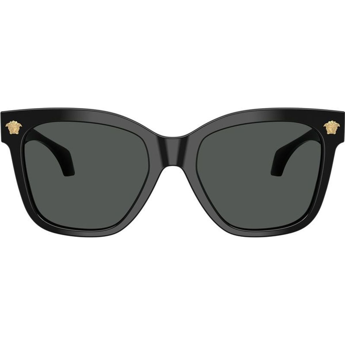 The women's Versace VE4511 sunglasses effortlessly blend contemporary style with timeless luxury. Designed for the moden woman who seeks a polished, empowered look, this modern square silhouette combines statement proportions with a luxurious black acetate construction for a flawless, comfortable fit. Versace's signature Medusa accents are delicately placed at the corners for instant brand prestige. Paired with dark grey lenses, the VE4511 sunglasses help protect against harsh UV rays while ensuring a refined finish to any ensemble.
